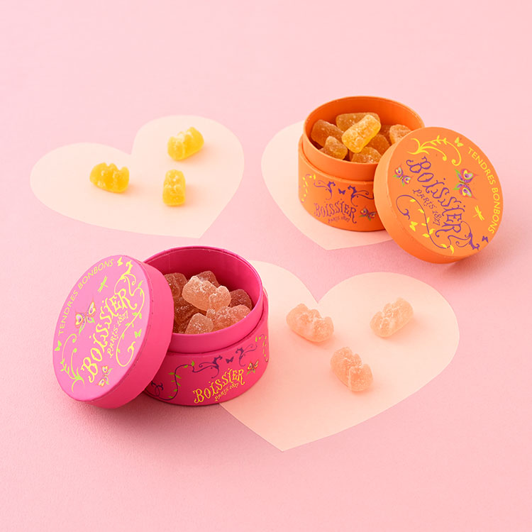 e.デパートで詳細を見る洗練されたレトロモダンのセンスあるパッケージで、ギフトアイテムとしても人気の高いボワシエは、エミール・ゾラの小説にも度々引用された、創業から190年の伝統を持つパリの老舗高級菓子店。伝統的なカクテル、ベリーニ・スピリッツからインスピレーションを受けた、クマ形のキュートなグミはカラフルな2種の味です。