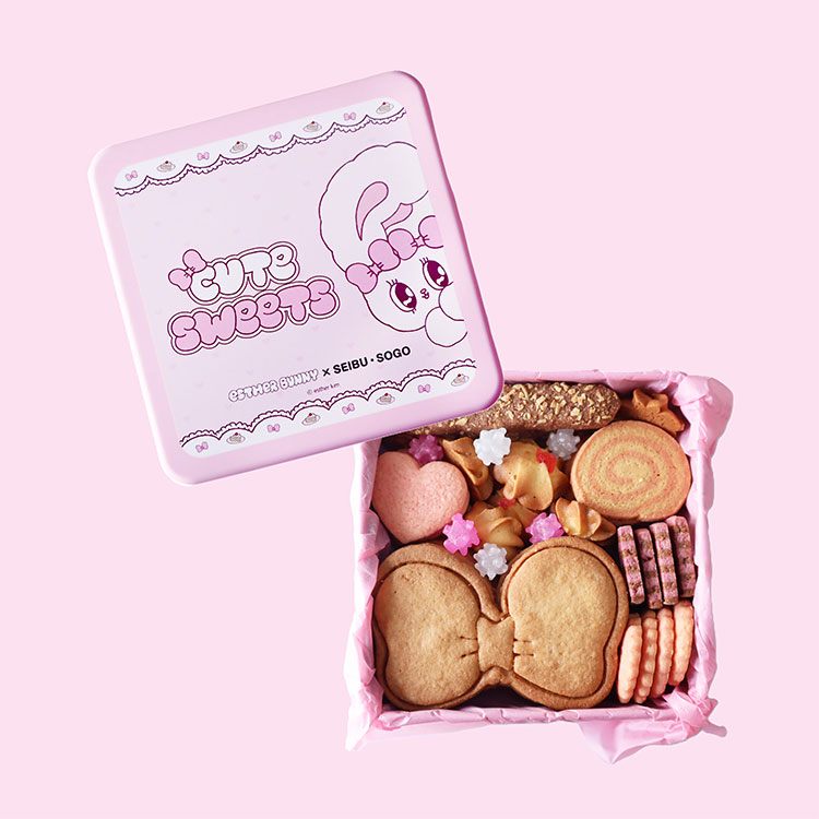 ポップでガーリーなエスターバニーの魅力をたっぷり詰め込んだ西武・そごうとエスターバニーコラボのオリジナルクッキー缶。バラエティーに富んだ数種のクッキーの中には、ひときわ目を引く大きなリボン型クッキーも。ギフトにもおすすめです。